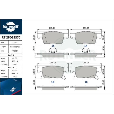 1 kép Rotinger fékbetétkészlet, tárcsafék ROTINGER RT 2PD32370