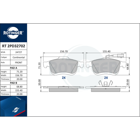 1 kép Rotinger fékbetétkészlet, tárcsafék ROTINGER RT 2PD32702