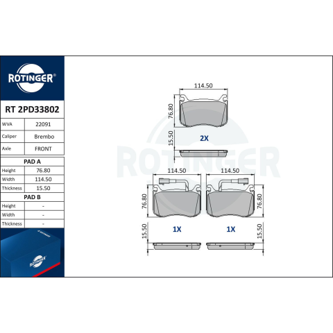 1 kép Rotinger fékbetétkészlet, tárcsafék ROTINGER RT 2PD33802