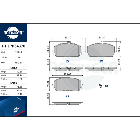 1 kép Rotinger fékbetétkészlet, tárcsafék ROTINGER RT 2PD34370