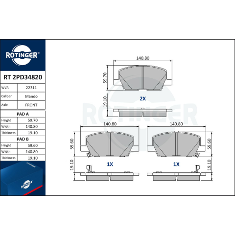 1 kép Rotinger fékbetétkészlet, tárcsafék ROTINGER RT 2PD34820