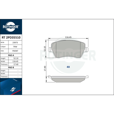 1 kép Rotinger fékbetétkészlet, tárcsafék ROTINGER RT 2PD35510