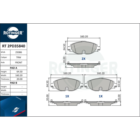 1 kép Rotinger fékbetétkészlet, tárcsafék ROTINGER RT 2PD35840