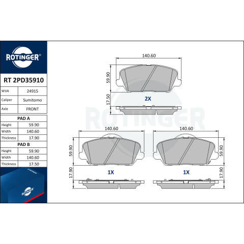 1 kép Rotinger fékbetétkészlet, tárcsafék ROTINGER RT 2PD35910