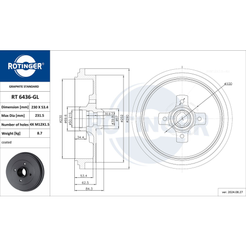 1 kép Rotinger fékdob ROTINGER RT 6436-GL