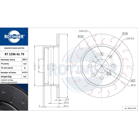 1 kép Rotinger féktárcsa ROTINGER RT 1296-GL T9