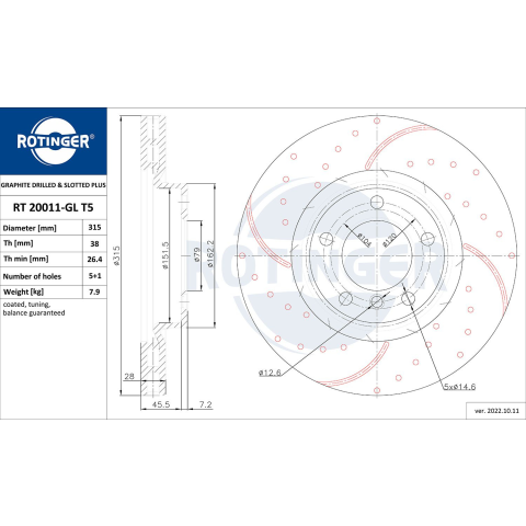 1 kép Rotinger féktárcsa ROTINGER RT 20011-GL T5
