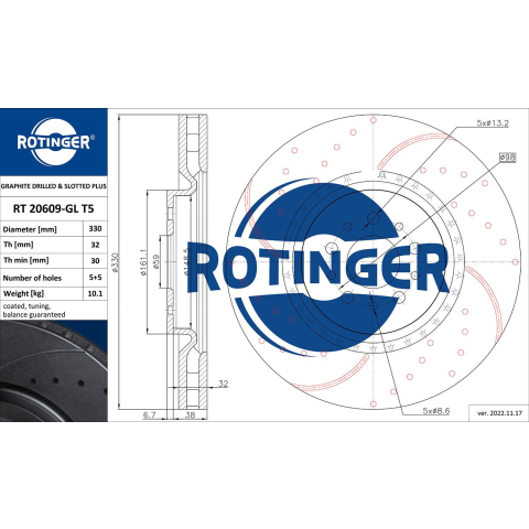1 kép Rotinger féktárcsa ROTINGER RT 20609-GL T5