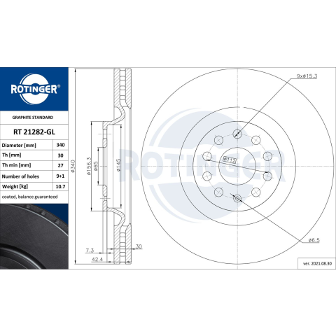 1 kép Rotinger féktárcsa ROTINGER RT 21282-GL