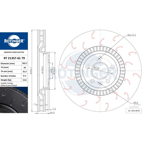1 kép Rotinger féktárcsa ROTINGER RT 21357-GL T9