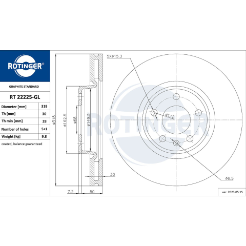 1 kép Rotinger féktárcsa ROTINGER RT 22225-GL