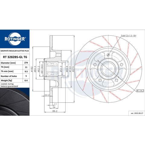 1 kép Rotinger féktárcsa ROTINGER RT 3282BS-GL T6