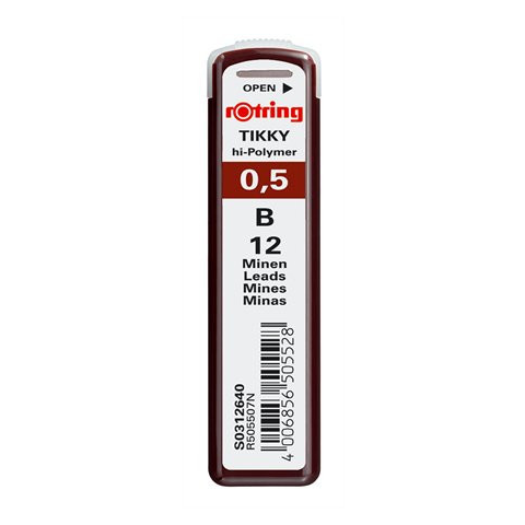Grafitbél, B, 0,5 mm, ROTRING az extra erős hi-polymer nyomósiron betét értékesebbé teszi a nyomósiront egy egyszerű utántöltős nyomósironnál 12 szál/tubus