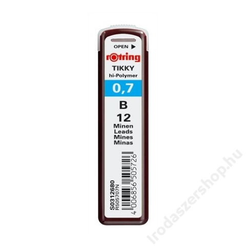Grafitbél, B, 0,7 mm, ROTRING (R505707) az extra erős hi-polymer nyomósiron betét értékesebbé teszi a nyomósiront egy egyszerű utántöltős nyomósironnál 12 szál/tubus