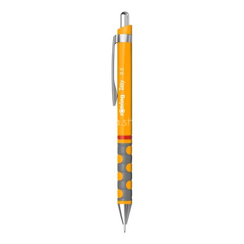 Nyomósirón, 0,5 mm, ROTRING Tikky, narancssárga Könnyű mechanikus ceruza gumírozott markolattal és neon színekkel a modern és merész megjelenésért. -forgó, sárgaréz mechanizmus a precíziós adagolásért -könnyű, műanyag test -háromszög alakú tolltest a