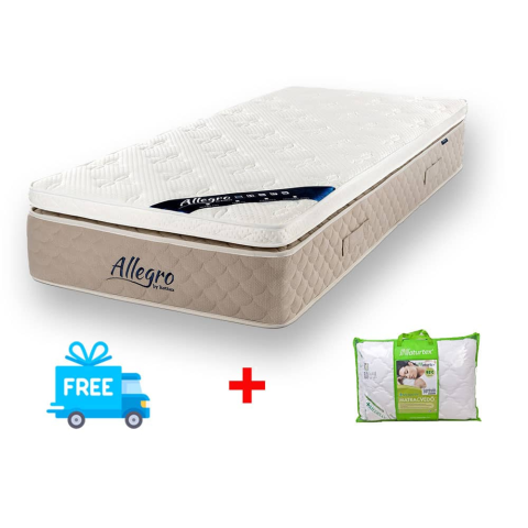 Az Allegro Elegance super matracot inkább kemény fekvőfelület jellemzi. A zsákrugós matracok közül rendkívüli kényelem és luxus kombinációját nyújtja az 5 zónával ellátott 18cm magasságú német edzett táskarugó és az egyedi komfortot nyújtó Enduro-Foam box-top réteg. Kitűnő választás, ha nem akarunk kompromisszumot kötni az elegancia rovására egy igazán masszív fekhely választása miatt.
