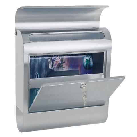 Postaláda - beltéri és kültéri, fali, rozsdamentes acél, névkártya, méretek 43,5 × 38,5 × 14 cm (H×Sz×Mé), rozsdamentes kivitel Az egyszerű és praktikus Rottner RONDELLO postaláda rozsdamentes acélból meg fog lepni az eleganciájával. Kiválóan alkalmas beltéri és kültéri használatra. A postaládából a küldeményt elölről veheted