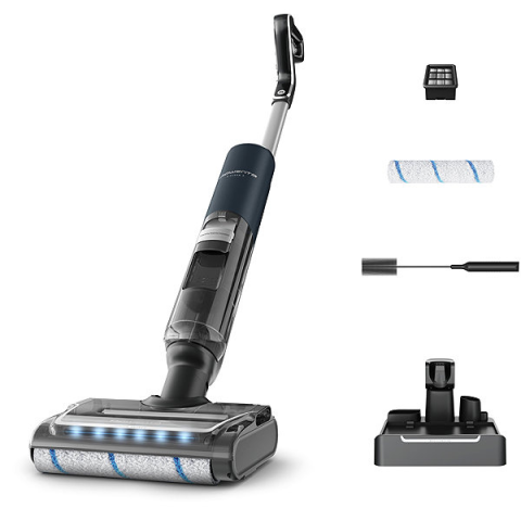 Padlótisztító - padlócsempe, vinyl, laminált padló és fa tisztítására ajánlott, akkumulátoros tápellátás, 350 m² felületi teljesítmény (egy töltéssel), 2 henger/kefe, kijelzővel, szennyeződésérzékelés, öntisztító ciklus, elmosás, szárítás és felszívás üzemmód, 80 dB zajszint, 250 W teljesítmény, 50 perc üzemidő, 3,5 óra töltési idő, tisztavizes tartály űrtartalma 0,65 l, hulladéktartály űrtartalma 0,5 l, alap, tisztító kefe és csere hengerek