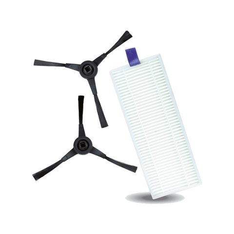 A nagy teljesítményű szűrő felfogja a részecskék 99,9%-át, Az oldalkefe lehetővé teszi, hogy a robot porszívó nagyobb hatótávolsággal rendelkezzen, és elérje a nehezen hozzáférhető területeket, például a sarkokat vagy a szegélyléceket. A kefe forgó mozgása megfogja és a szívónyíláshoz irányítja az útjába kerülő szennyeződéseket. A kefét és a szűrőt 6 havonta (vagy 150 órányi használat után) kell cserélni a robot porszívó optimális teljesítmén