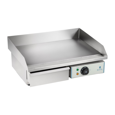 A Royal Catering RCEG-55 elektromos grill segítségével ön egész évben finom grillezett ételekkel tudja vendégeit elkápráztatni. Minőségi alapanyagokból készült és a gyártó komoly figyelmet fordított a kialakításra. Az elektromos grillsütő burkolata rozsdamentes acélból készült, míg az 55 cm széles lap szénacélból. A fröccsenés elleni védelemmel körbevett grilltál sima felületű, és a hőmérséklete egy szabályzóval állítható. A készülék rendelkezik