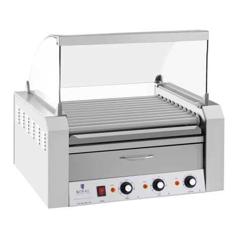 ROYAL CATERING Hot Dog Grill - 11 görgő - Hőfiók - Rozsdamentes acél