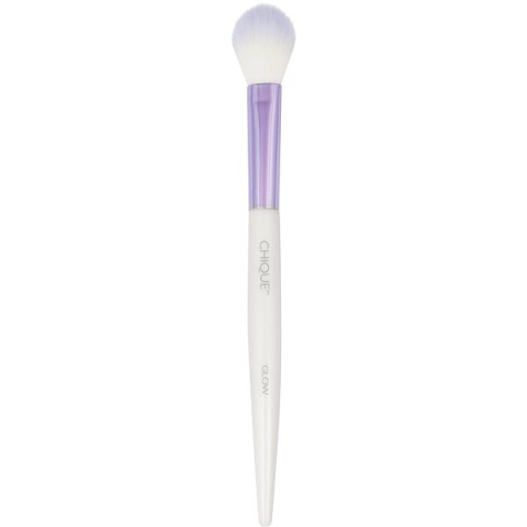 Sminkecset - pirosítóhoz, szintetikus sörtéjű A CHIQUE STUDIO GLOW highlighter ecset puha, kerek hegye finom ragyogást és friss megjelenést kölcsönöz az arcnak. A sűrűn elhelyezett szintetikus sörtéket alumínium kupak rögzíti, és a mindennapi has