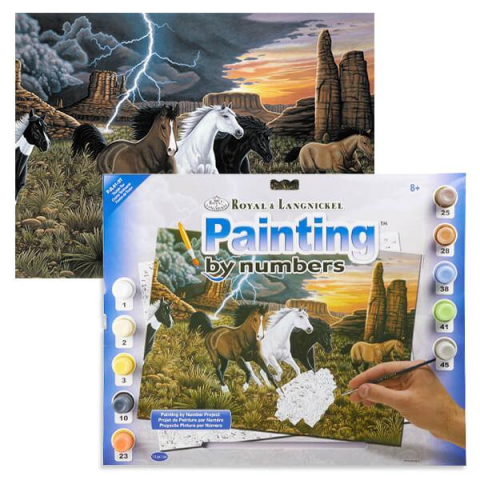 1 kép Royal & Langnickel Számozott kifestő készlet, akrilfesték+ecset, 29x39 cm - Futó lovak