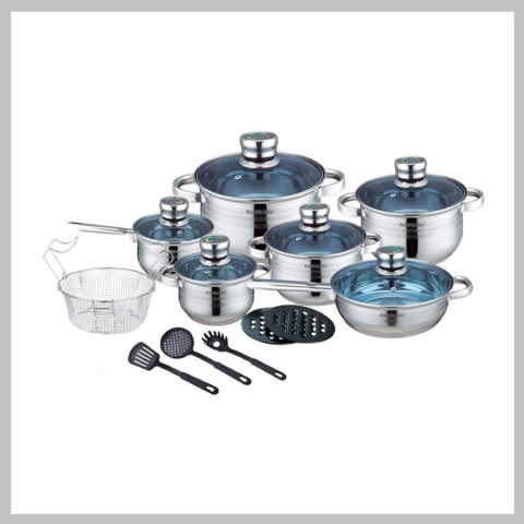 Royalty Line 18 darabos rozsdamentes acél főzőedénykészlet üvegfedővel RL-1801B edény termékleírás
