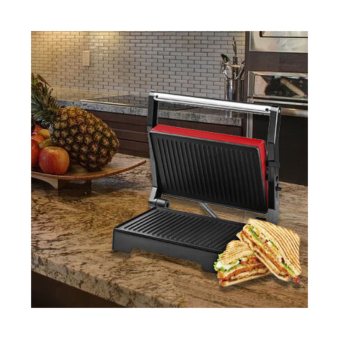 Értékcsökkent - Royalty Line elektromos grill-, és panini sütő 1000W teljesítmény, piros Figyelem! A termék értékcsökkent! A sütő új, egyik lapja hajszálkarcos, mely a termék használatát nem befolyásolja. Készíts egyszerűen friss sülteket, legyen szó akár halból, csirkéből, zöldségekből, vagy melegszendvicsről! Kompakt méretének köszönhetően a készülék nem foglal sok helyet a konyhapulton, használata gyerekjáték, és tapadásmentes bevonatának hála a