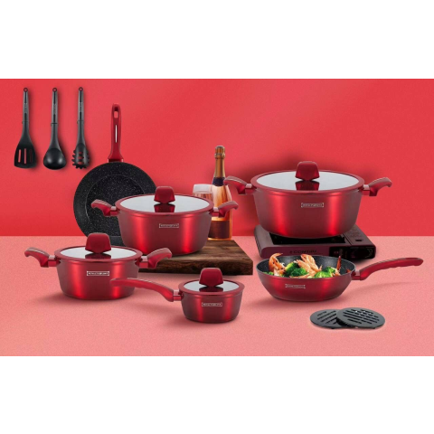 Royalty Line prémium 15 részes gránit bevonatos edénykészlet Piros Metál edény termékleírás