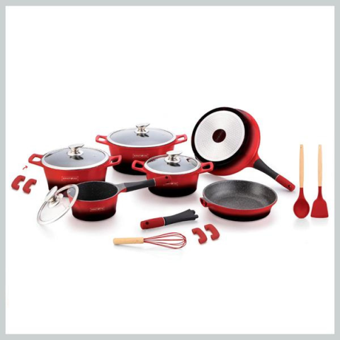 Royalty Line RL-ES1014MR 17 darabos márvány bevonatú edénykészlet - piros edény termékleírás