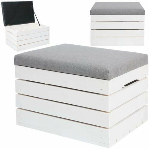 RPP Fa ülőke és tárolóláda, előszobai puff, felnyitható ülőrésszel, fehér-szürke színben bútor termékleírás