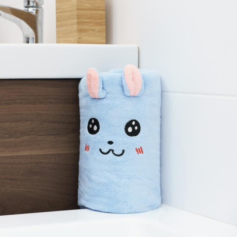1 kép RPP Puha, mikroszálas nyuszi mintás pamut törölköző, 3D fülekkel, kék