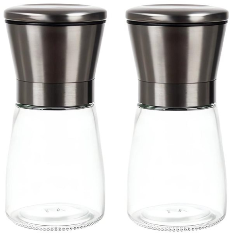 Fűszerdaráló - kézi, állítható őrlési finomság és átlátszó tartály, fém, műanyag és üveg konstrukció, 2 daráló a csomagban, méretei 13,3 × 6,4 cm (magasság × átmérő), tömege 342 g This Ruhhy 23027 Set of salt and pepper grinders 2 pcs is a grinder that'll be perfect for the kitchen, which can be used for salt, pepper or other various spices. It'll make it easy to add some extra