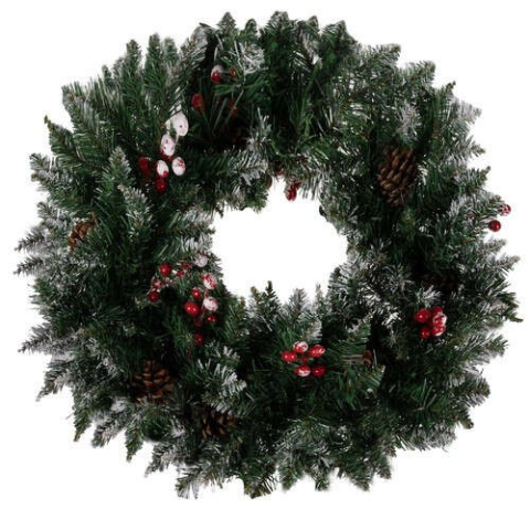 Stílusos karácsonyi koszorú 45 cm átmérővel, havas hatású ágakkal, tobozokkal és piros bogyós díszekkel. Beltéri és kültéri dekorációnak egyaránt tökéletes. Dobd fel az ünnepi hangulatot ezzel a havas hatású karácsonyi koszorúval, amely azonnal meghitt