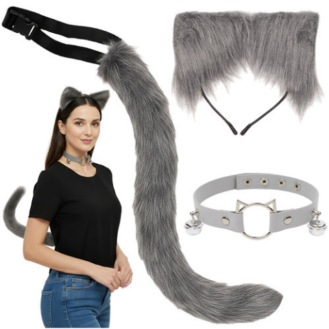 Strój kota/lisa 3el. szary Ruhhy 26586 Strój kota / lisa / wilka RUHHY ogon uszy choker, szary zestaw Therian 3w1, który przyciąga spojrzenia!Szukasz dodatku, który przyciągnie spojrzenia i pozwoli Ci wyrazić siebie w 100%? Ten zestaw 3w1 to więcej niż
