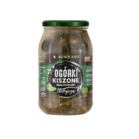 Runoland bio kovászos uborka 820 g Összetevők: bio uborka 55%, víz, só, bio kapor, bio fokhagyma egyéb allergének: nincs Átlagos tápérték 100g termékben: - Energia: 50 KJ (12 kcal) - Szénhidrát: 2g - Zsír: 0g - Fehérje: 1g
