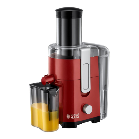 "Termékinformációk:•Extra széles adagolócső a nagyobb méretű gyümölcsökhöz, zöldségekhez•750 ml-es gyümölcslétartó•2 literes gyümölcshús tartály•Levehető, rozsdamentes acél vágóél a könnyű tisztításért•Beépített biztonsági funkció, a készülék csak pontos illeszkedés esetén működik•Változtatható 2 sebességfokozat, kemény és puha gyümölcsökhöz•Mosogatógépben mosható tarozékok•Csúszásmentes talapzat•Beépített vezetéktár