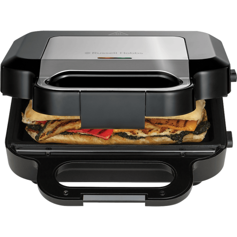 Fogyassza kedvenc ételeit bármikor, a sokoldalú Russell Hobbs Creations 3 az 1-ben szendvicssütővel. A három cserélhető sütőlemezzel elkészítheti a tökéletes melegszendvicset, gofrit vagy grillezett paninit. Miért ne kezdhetné a napot egy finom, meleg töltött szendviccsel? Hozza ki a legtöbbet az ebédidőből egy finom paninivel, vagy engedjen az édesség iránti vágyának egy gofrival. A kivehető sütőlemezek 3-szor tartósabb*, továbbfejlesztett tapadásmentes bevonatt