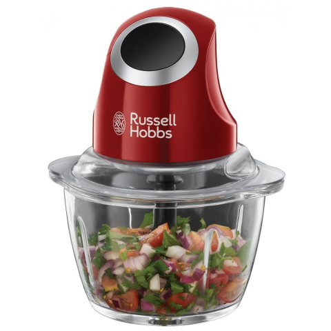 Aprítógép - 200 W teljesítmény, 1000 ml-es edény, 1 sebességfokozat, 1 db edény, mosogatógépben tisztítható, hordozható edény, anyaga: üveg A szuper Russell Hobbs elektromos aprítógép egy tökéletes konyhai segítő, amely megkönnyíti az alapanyagok előkészítését a főzéshez. A kiváló minőségű 200 W-os Russell Hobbs 24660-56 Desire Mini aprít