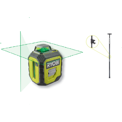 1 kép Ryobi 360˚zöld vonal lézer teleszkópos állvánnyal, önbeálló RB360GLL-K