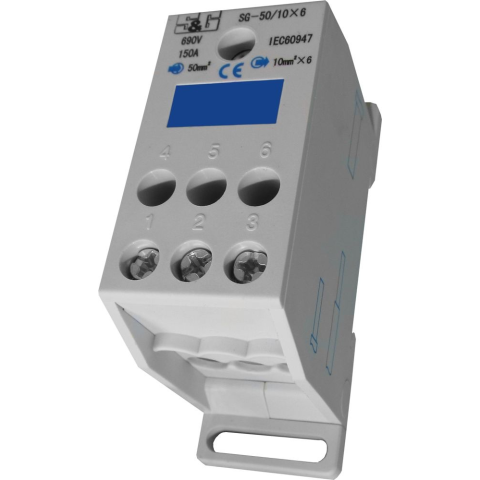 Fővezetéki leágazó sorkapocs. Fővezeték: 50 mm2. Leágazó vezeték: 10x6 mm2S&G SG-50-10x6 általános leírása:A sorkapcsok és vezeték összekötők az elektromos rendszerekben nélkülözhetetlen elemek, amelyek a különböző elektromos alkatrészek és vezetékek bizt