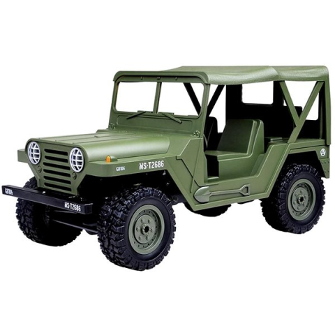 Távirányítós autó - katonai autó, méretaránya 1:14, kültéri használatra, elektromos egyenáramú motor, négykerék-meghajtás, led világítás, gumiabroncsok, proporcionális vezérlés és felfüggesztett alváz, max. sebesség 16 km/h, átviteli hatótávolság 50 m, autó NiCd akkumulátorral, vezérlés kormánykerékkel, távirányító 3 AA elemmel (nincs mellékelve), üzemidő akár 30 perc Ez a S-Idee Amerikai Jeep M151, zöld autó egy lenyűgöző korszerű játék, amell