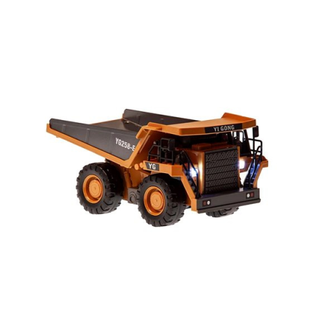 Távirányítós kamion - mérete 11 × 12,5 × 21,5 (Ma×Sz×H), alkalmas kültéri és beltéri használatra, elektromos egyenáramú motor, egyrotoros, led világítás és gumiabroncsok, kapcsolható üzemmódok és demo mód, fényeffektek és hangeffektek, átviteli hatótávolság 35 m, kamion Li-Ion akkumulátorral, vezérlés, távirányító 2 AA elemmel (nincs mellékelve), 9 csatornás vezérlő, üzemidő akár 10 perc Ez a kiváló S-IDEE RC dömper, 1:24, sárga távirányítós k