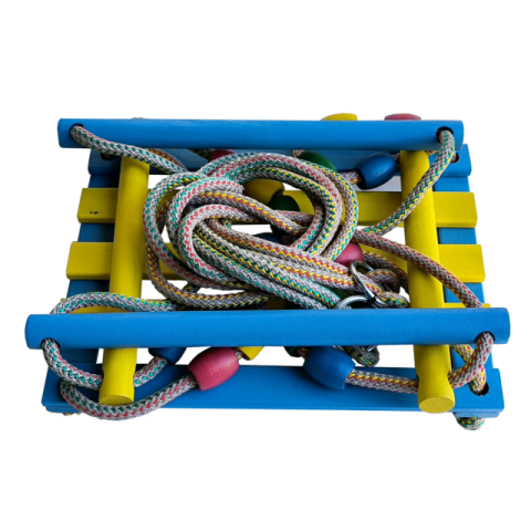 Fából készült, biztonságos fa hinta védőkerettel és erős kötéllel. A hinta fémkarikákkal rögzíthető bármilyen kampóra, karabinerre, a hinta kültéri és beltéri használatra egyaránt alkalmas. A rögzítést minimum 5 cm vastag fába kell behajtani. Terhelhetőség: 40 kg. Mérete: 38×28×1,5 cm. 2-4 éves korosztály számára. Max. 2 méteres magasságig függeszthető.