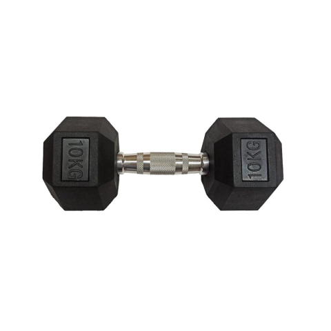 A hatszögletű gumis kézisúlyzó ideális választás azok számára, akik szeretnék fokozni edzéseik hatékonyságát. A gumiborítás védelmet biztosít a súlyzónak, míg a fém fogó rész biztosítja a kényelmes és biztonságos használatot. A 10 kg-os súly segít az izom