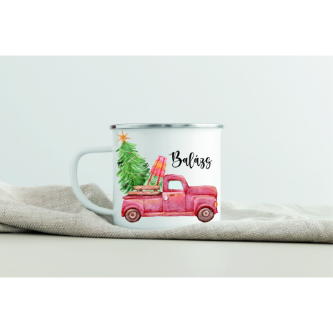 1 kép SA Egyedi névre szóló zománcozott bögre - Piros platós autó 2.