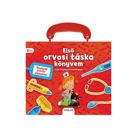 Minden gyermek szeret „orvososat” játszani, a legkisebbek is; minden gyerek szeret mesét hallgatni; minden gyerek szeret képeskönyvet nézegetni; és minden gyerek szeret puzzle-t játszani. Most végre itt az első igazi orvositáska-könyv, mely egyesíti magában a nézegetős-verselős mesekönyvet, a játék orvosi táskát, az „orvosos-gyógyítós játékot” és a puzzle-t! Az orvosi táska formáját idéző, táskaszerű füllel ellátott, meglepetés puzzle-elemeket (a dokt