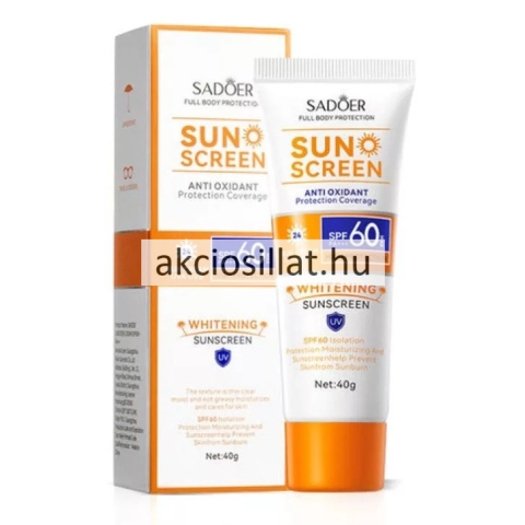 Sadoer Antioxidant fényvédő krém SPF60+ 40g – Napi védelem, ragyogóbb bőr, antioxidáns támogatással Fedezd fel a mindennapi bőrvédelem új szintjét a Sadoer Antioxidant fényvédő krém SPF60+ segítségével, amely nemcsak intenzív napvédelemmel, hanem bőrfiata