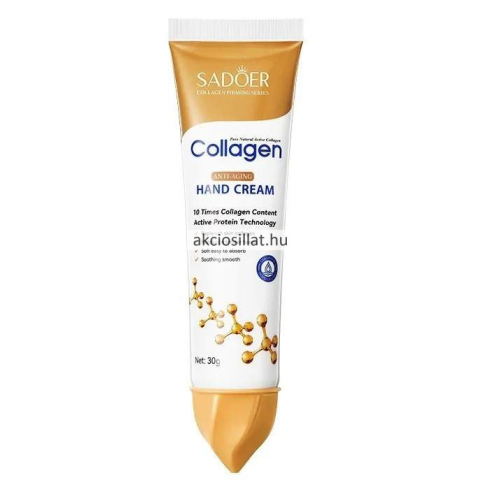 Sadoer Collagen Kollagénes Öregedésgátló kézkrém 30g – A kezeid fiatalságának titka Tapasztalja meg a kollagén bőrtápláló erejét a Sadoer Collagen Kollagénes Öregedésgátló kézkrémmel! Ez a könnyű, mégis intenzíven hidratáló krém segít megőrizni kezei